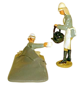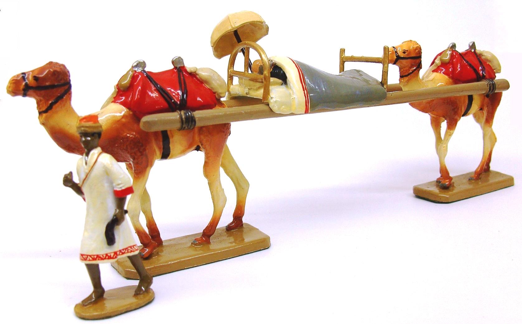 The special figure for Christmas consists of two camels carrying a wounded officer in a bed supported by two telegraph poles slung between the camels.